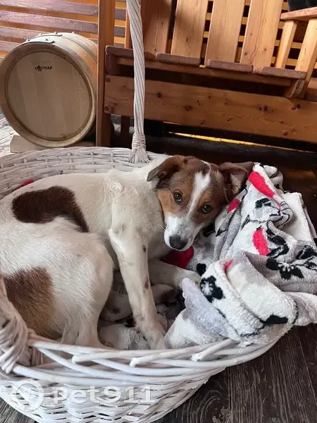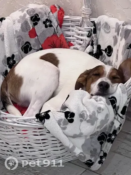 Бим очень активный щенок, достигший половозрелый возраст. Воспользовавшись отсутствием хозяев, сделал подкоп под калиткой и убежал. У Бима окрас Бело-коричневый. На лапах и животе веснушки коричневого цвета. На лбу особая примета: белое сердечко.