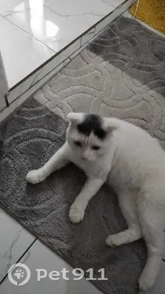 Найден кот! Серый с белым, очень дружелюбный. Убедительная просьба владельца связаться! Телефон: +7 (123) 456-78-90.