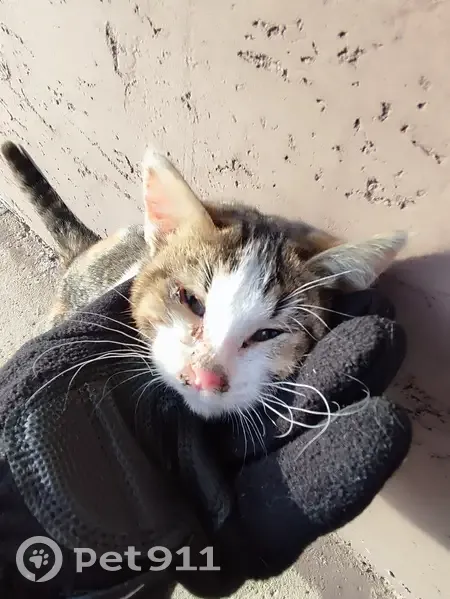 Нашел маленького котенка в Г.Уфа,Миловка окола Рябиновой. У него (неё) что то с глазом и мордочкой,когда мяукает - присутсвует такое хриплое мяуканье. На вид домашний,чувство что его выкинули/потеряли/подбросили в окрестности. Трехцветный яркий окрас. Гулял у домов где конечная Маршрутки 112 "Ул.Рябиновая (Миловка),заметил как у домов трётся котик,решил посмотреть кто это. Видел как лежал на досках на солнце,ночевал в коробке с каким-то вещами. Сейчас проходил мимо этого места за мной увезался,решил погладить,но кормить нечем( Возле ног тёрся и мяукал. Забрать не можем,уже есть 1 кошка. Может кто то потерял? Зима на носу, хотелось что бы кто то забрал и ухаживал