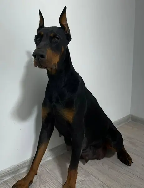 Найдена собака Доберман.Ушки еще не купированны, хвост купирован. Возраст максимум 4/5 месяцев , не агрессивный идет на контакт , знает пару команд. Видно что привык к выгулу. Игривый и послушный, просто так не лает , вольер знает. Отдаю в добрые руки , у себя оставить не могу.