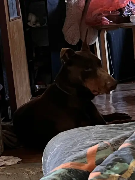 24.03.2024 г. Вечером в 21:00-22:00 в Минеральных водах на улице Московской (район 3 Лицея) При перевозке, сломалась машина. Собака породы доберман,погрыз ошейник и убежал.