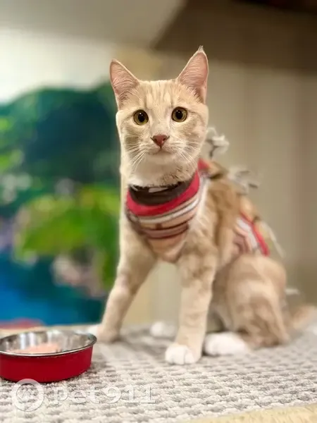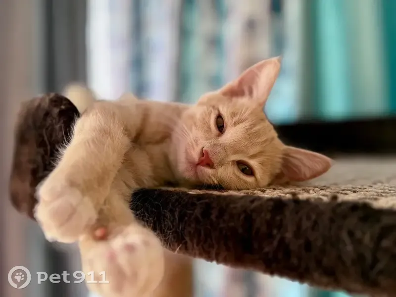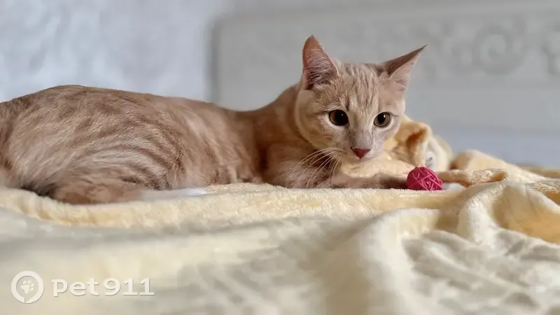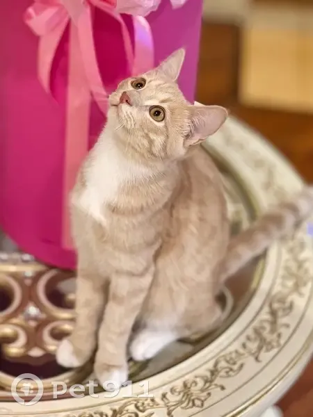 ️Котик небольшой - подросток (младше года), кастрирован. Окрас: персиковый с белой грудкой, пятнисто-полосатый, глазки - желто-песочного окраса . Особенности: очень длинный хвостик, ласковый, доверчивый, любит людей.