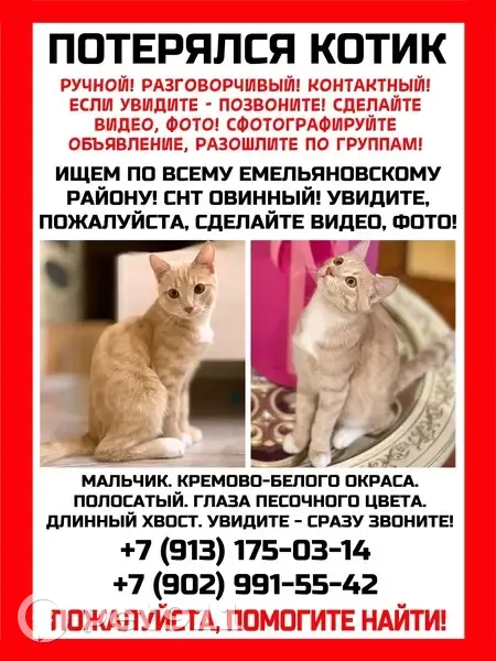Объединено с объявлением rl1064224. Причина-дублирование информации. Описание дублирующего объявления: ️Котик небольшой - подросток (младше года), кастрирован. Окрас: персиковый с белой грудкой, пятнисто-полосатый, глазки - желто-песочного окраса . Особенности: очень длинный хвостик, ласковый, доверчивый, любит людей.