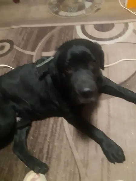 Чёрный лабрадор мальчик. Бегал со стаей собак и прибился. Взрослый, умный, красавец!