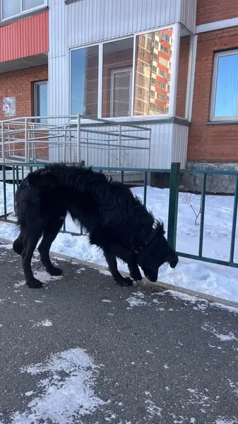 Длинношерстная, чёрная. Ласковая идёт ко всем. Особая примета необычно пьёт воду(кусает воду) на языке чёрное пятно.