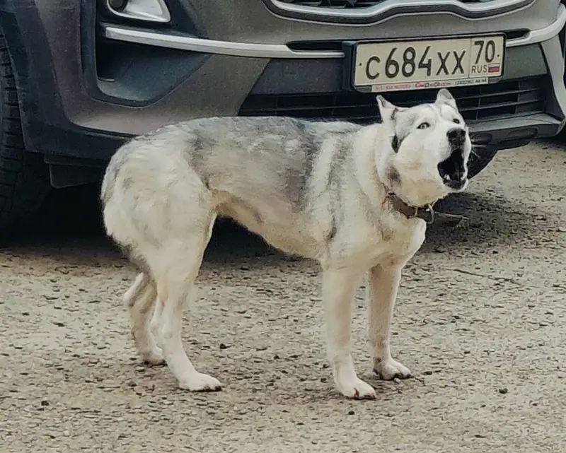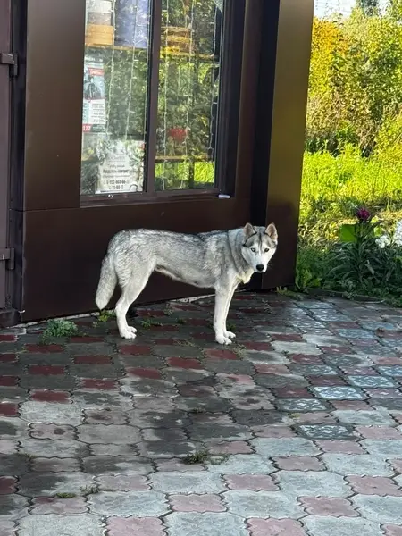 Собака,кобель,народа сибирская хаски,серый окрас,похож на волка,глаза разного цвета,отзывается на кличку Чивас.Ушел с участка в районе Малое Протопопов.