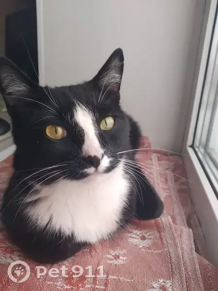 Окрас чёрно белый, гладкошёрстный, добрый, ласковый. На правом ушке нету части шерсти совсем немного. Ушёл на улицу утром 21.09.2025 и досих пор не пришёл