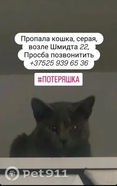 Пропала кошечка вчера,, серодымчатая, на носу бежевое пятнышко и грудке, глаза янтарные, вышла в окно,((( просьба есле кто увидит ,пожалуйста отпишитесь, за вознограждения.375257935511