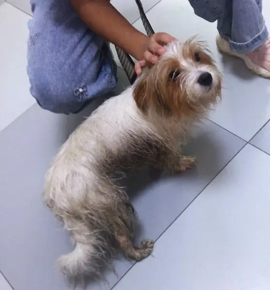Приучена ко всему. В машине сразу находит место. Явно домашняя.