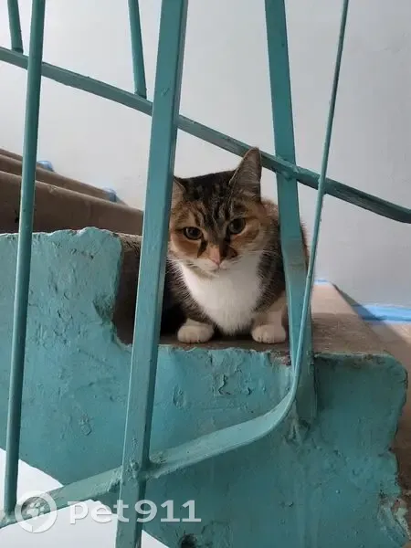 найдена кошка в подъезде на пр. Кирова. Кошка ласковая, упитанная, не пугливая, чистая и ухоженная, явно домашняя. Скорее всего, выскочила из квартиры. Окрас трёхцветный, белая грудка и белые лапки. Хозяева, найдитесь, пожалуйста!