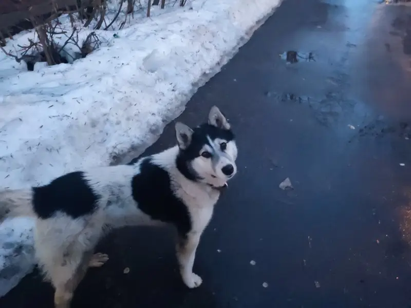 Найдена собака породы хаски. Окрас черно-белый. Дружелюбный с людьми и животными. Знает команды. Пустили временно в квартиру, есть возможность оставить у себя максимум ещё на сутки .