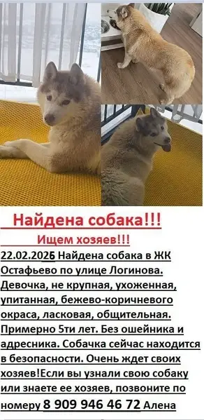 Потерялась собака, порода Хаски, кличка Герда, окрас серо-белый, глаза голубые, была без ошейника. Потерялась в р-не Стулово. Собака добрая, ласковая и очень доверчивая, увидевших ее прошу сообщить по телефону Игорь и Татьяна