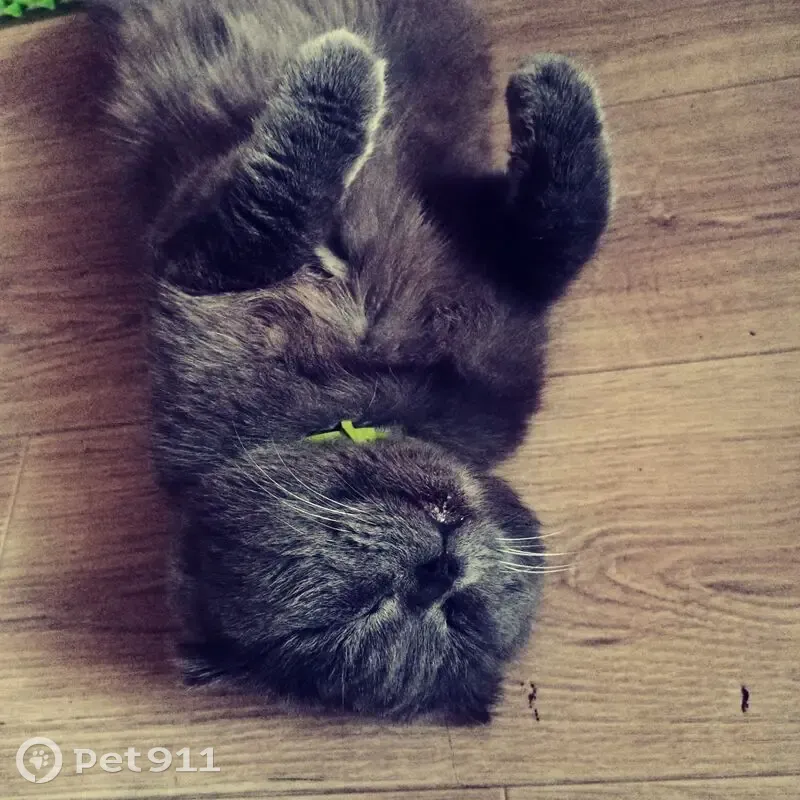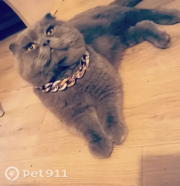 Серый цвет, глаза жёлтые, оранжевые, ошейник зеленый, пухленький,больше обычных котов, вислоухий шотландец (чистокровный), откликается на имя-Рамзесик, Рамзик, Рамзесинка. Ушёл гулять на улицу и не вернулся, любил гулять в жд парке,очень ласковый котик, в семье живет 6 лет почти с самого рождения, купила его когда ему был месяц