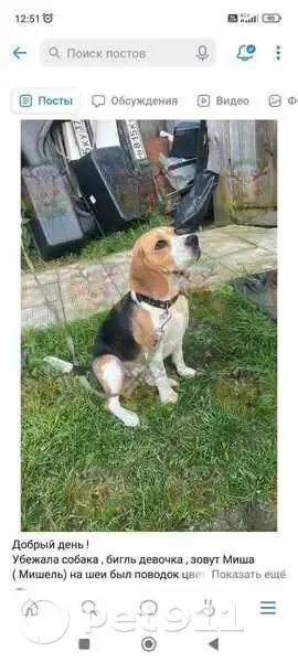 На Мише был ошейник цвета хаки. Ласковая и добрая девочка. Со слов очевидцев забрал мужчина из добрых побуждений с озеро Рубского. Не мог найти хозяев, контактов не оставил. Телефон для связи 89040339104
