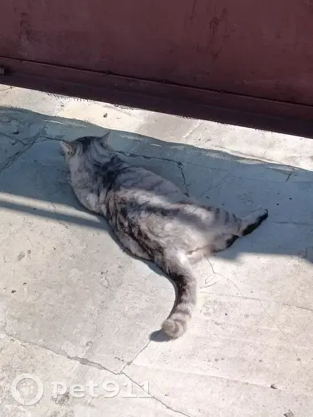 Серый окрас в полоску с черным, зелёные глаза,за правым ухом есть рана. Спокойный и послушный, откликается на "кис-кис". Кастрирован. Внезапно ушел из дома и больше не вернулся