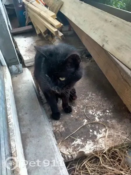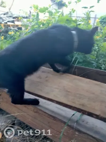 Черный окрас с лёгкой дымкой, была в серо-голубой ошейнике, людей не боится.