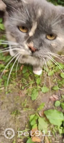 Пушистая, очень ласковая кошка, видно что была домашней. Очень печальный взгляд, поэтому зовём ее Печалька. Невысокая, крупный костяк. Находится в районе села Ильинское. Можем придержать, пока не найдутся хозяева. Себе не можем взять так как аллергия