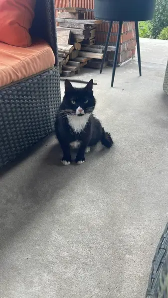 Найдена кошка, МО, Домодедово, станция электрички Пл 52 км. Окрас чёрный, белые лапы. Очень добрая и ласковая.