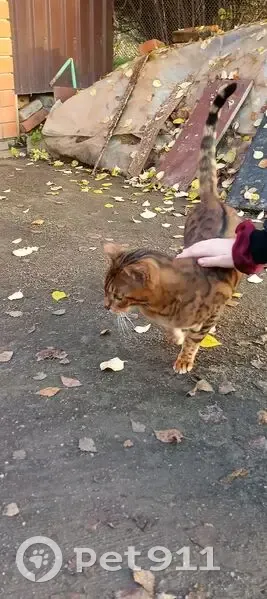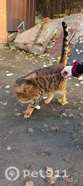 Бенгальская кошка. Уши как-будто погрызаны другими котами ,не знаю.Нссколько мы поняли кот. Оченб ласковый,не бриться людей. В каком-то смысле это плохо.Нашли во время прогулки. Не знаем кот на самовыгуле или потерялся
