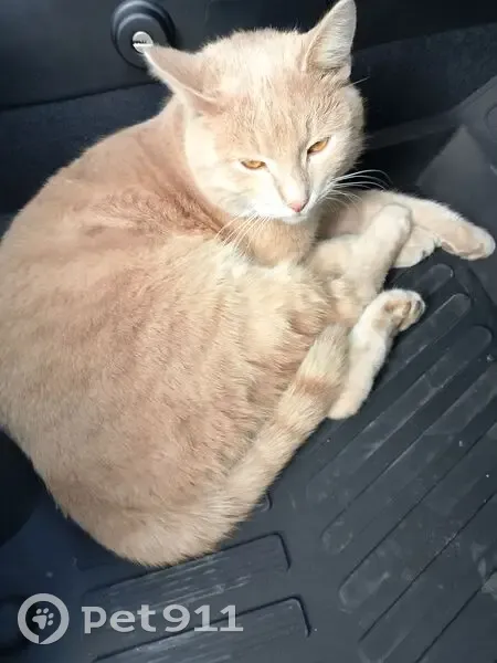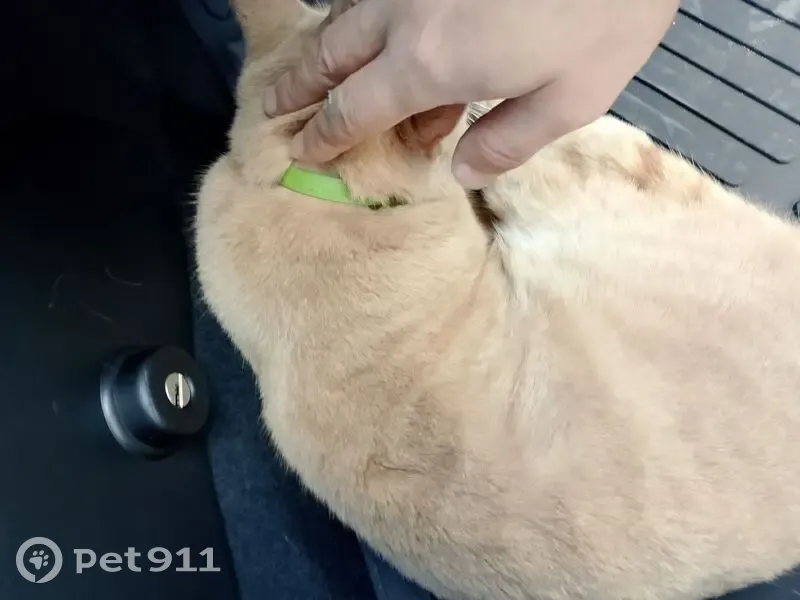 Найден кот кошка песочный цвет, зелёный ошейник,глазки жёлтенькие, домашний, очень культурный и чистенький.Тусовался на парковке Ростикс Симферопольское шоссе в сторону города Чехов, ко всем подходил, очень замерз