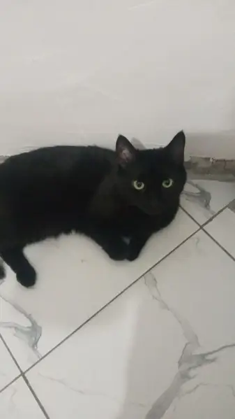 Село Ангелово, Митино. Кошечка , черная полностью . На вид маленькая и совсем худая. Очень ласковая, сидит в подъезде под батареей. Идет на руки, разговаривает - отвечает и хорошо идет на контакт.
