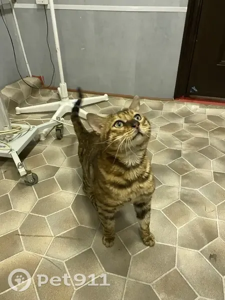 В д. Поддубки Дмитровского городского округа прибился кот, взрослый, не кастрирован, похож на бенгальскую породу кошек или метис с ней. Был очень худой, голодный, бросался под ноги, мяукал. Временно придержали, откормили.