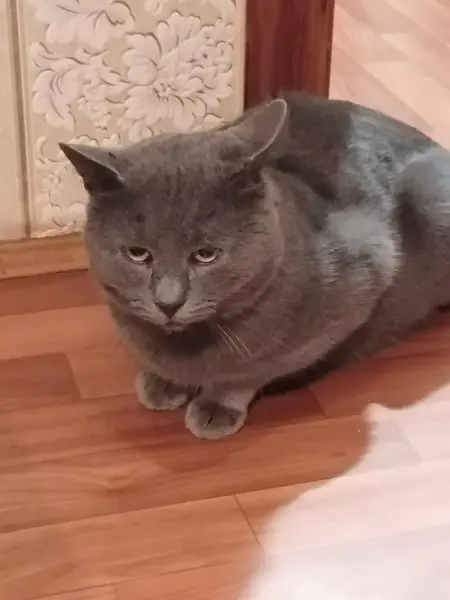Найден, предположительно, кастрированный кот(не даёт притронуться к хвосту). Очень ласковый , видео что был домашний,т. К откормлен. Прибился приблизительно конец ноября -начало декабря. Окрас пепельно-голубой, глаза оранжево-желтые. Похож на русскую голубую.