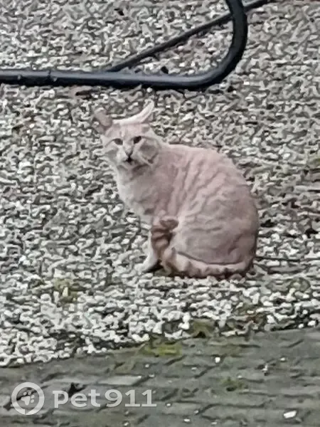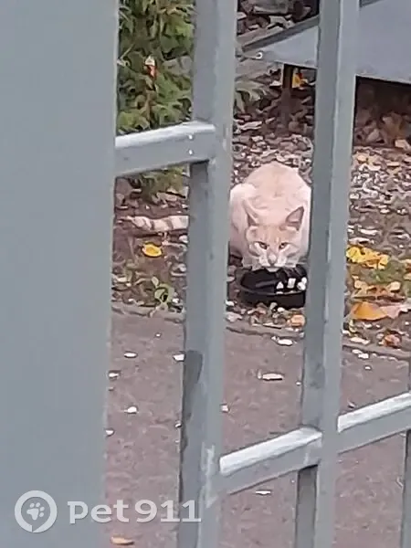 Котик светло-персикового цвета, лапки длинные, не крупный и не маленький, хвост в полоску более темного цвета, чистый, похож на домашнего, но очень пугливый. Приходит к моему дому уже не раз, кормлю его, но взять не удается.