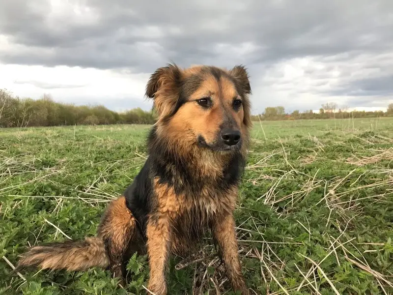 Похож на овчарку, был с поводком. Запрыгнул в машину. В машине, в багажнике спокойно ездит , сам запрыгивает. Адекватный, но есть особенность. Он бросается на руку, когда протягиваешь руку, может укусить. С ладошки угощение берет. Водоплавающий, любит играть с кольцами.