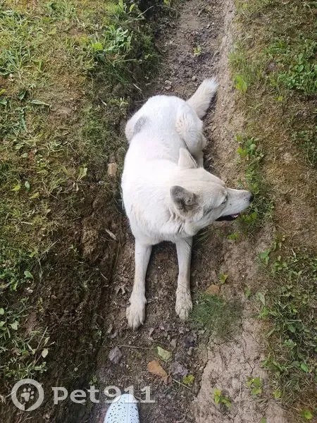 Найден в д. Алексино, Истринский округ. Белый кобель, серое пятно на спине в районе поясницы, ему два года, без ошейника, дружелюбный, умный, привык к выгулу - в туалет ходит не в вольере. Был без ошейника. Предположительно - сбит машиной. Находится на лечении и попечении волонтеров.