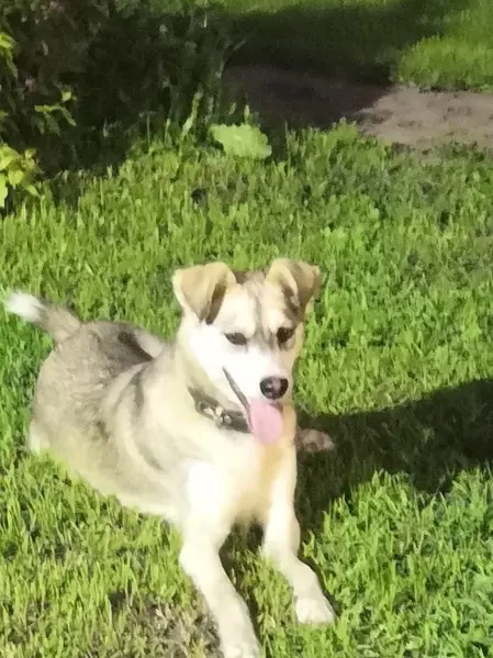 Девочка- месяца 4.Микс из дворняжки и лайки.Мраморно-песочный окрас.