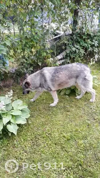 Впервые появилась в начале дачного сезона, была без амуниции. Дружелюбная с детьми и взрослыми. Подкармливаем всем СНТ и надеемся, что найдется хозяин. Очень переживаем, что с ней будет, когда осенью все раз'едемся.