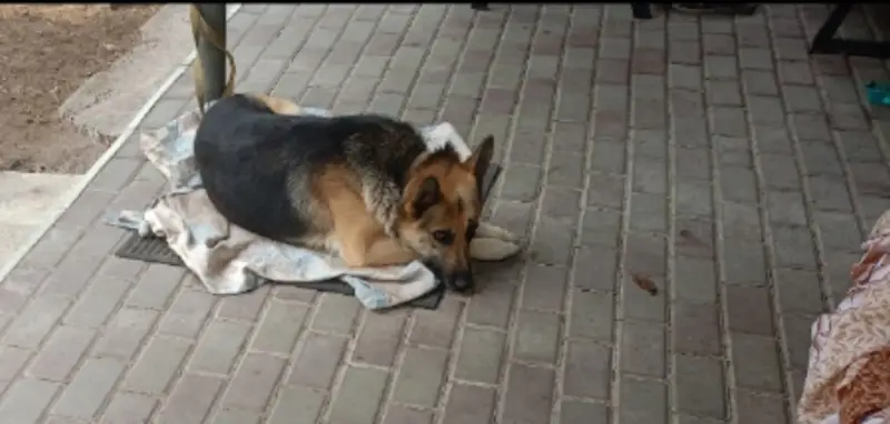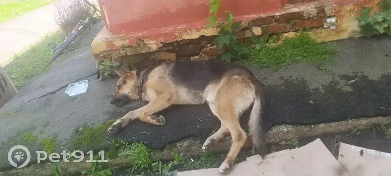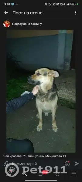 В городе Клин прибился сегодня. С 6 утра местные его заметили, обретается возле домов ул. Набережная Бычкова и ул. Красная. До этого был замечен ночью на ул. Мечникова. Контактный. Команды знает. Тряпичный ошейник с болтающимся цепным карабином. Придержать не смогла, бродит по улицам.