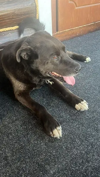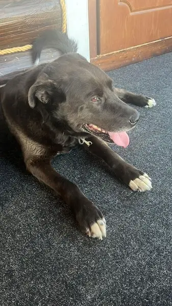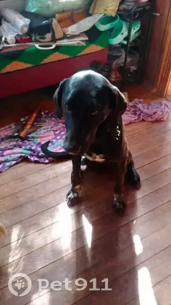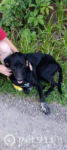 Хозяин этой собаки не нашёлся, не отозвался. Женщина приютившая на время потеряшку не может долго держать пса на дачной территории, скоро закончится сезон. Ищем новую любящую семью! Черная собака с бело-пятнистыми носочками на передних лапах и белым пятном на груди, похожая на черного метиса курцхаара или черного поинтера. Мальчик, молодой (не больше года) и очень умный.