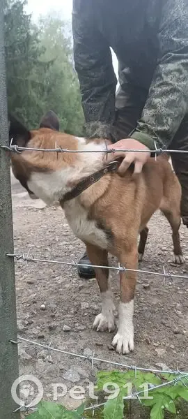 В районе гаража слева от автобусной остановки "Лесной родник" (за Михнево, Ступинский район) бегает крупный кобель. Рыжий, остроухий. Очень добродушный, чистый, явно домашний, в кожаном ошейнике.