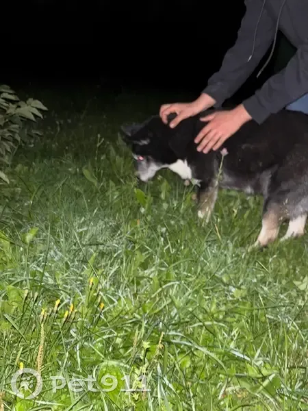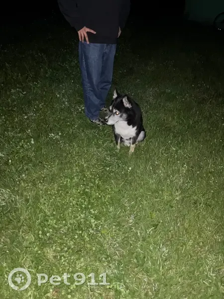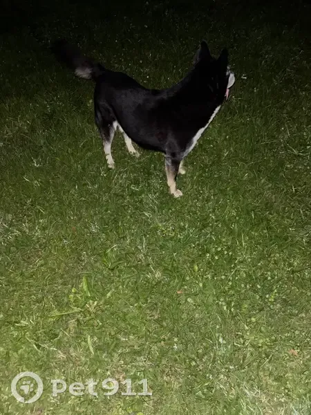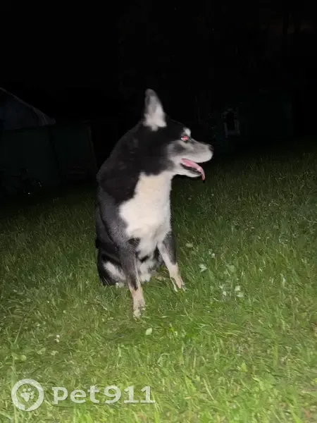 Собака привязалась ко мне по дороге, черно-белый окрас, темные зрачки, ведет себя очень дружелюбно, знает команды, игривый, шерсть ухожена, на дворнягу не похож