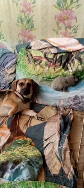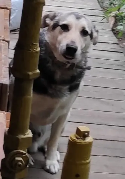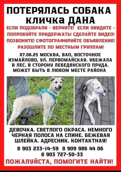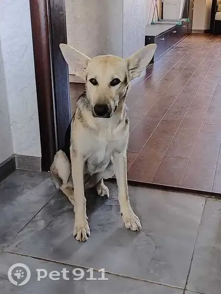 Окрас чепрачный, мордочка белая, из особых примет - большие уши и глаза, как будто обведенные стрелками, белые лапки, розовое пузико. Возраст - около 6 месяцев. Команды учит на лету. Уже умеет сидеть, лежать, давать лапу, на "иди сюда" бежит со всех ног. Заниматься ей нравится. В туалет успешно учится ходить на улицу, но может сходить и дома на пелёнку. Нв поводке не тянет, от других собак с ума не сходит. Умница девочка.