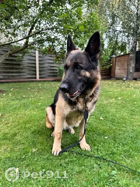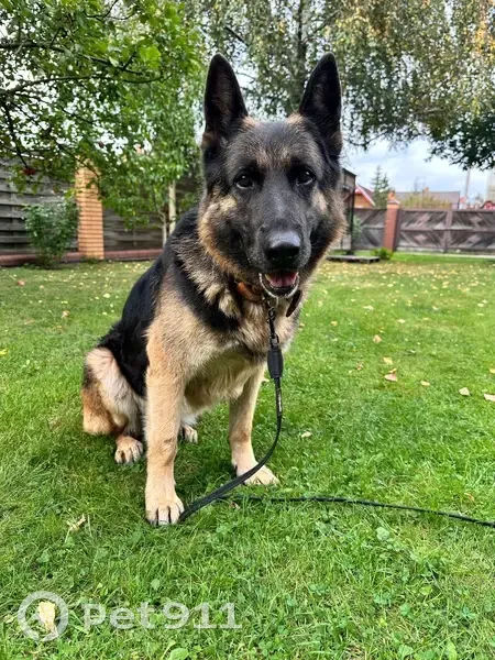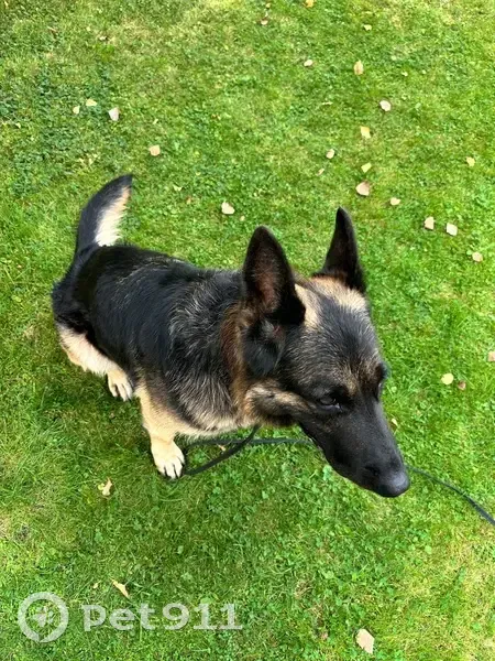собака девочка, с ошейником кожаным коричневым, выбрита спина в районе задних лап, вся шерсть в зеленке. Ощущение, что лечат какой-то дерматит. Похожа на немецкую овчарку, социальная, человека не боится, к поводку приучена. Знает команды. Надеюсь, что потерялась, а не выкинули.