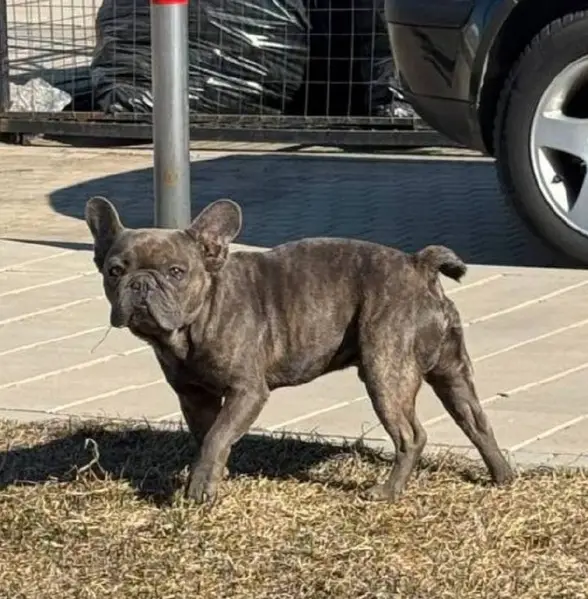 Мраморно-тигровый, не кастрированный , серый ошейник от блох , есть чип (не активированный).Возраст до года , очень контактный и игривый,боится громких звуков