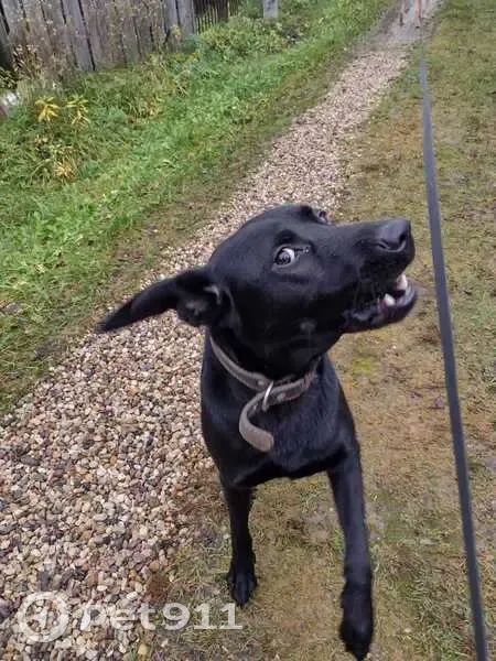 Кобель молодой, черного цвета,, ухоженный в ошейнике коричневого цвета. Откликается на кличку Блэк, голос низкий, по характеру веселый и активный. Уши висят