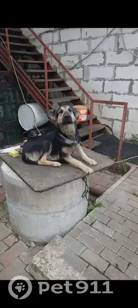 На шее цепь толстая. Окрас чепрачный серый подпал Была беременна. В начале октября родила Снимали помещение, пришли уже с собакой, потом выяснилось,что собака не их. Ищем хозяина.