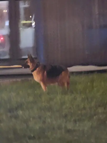 В Люберцах сегодня замечена овчарка, бывший завод Ухтомского. Брезентовый ошейник