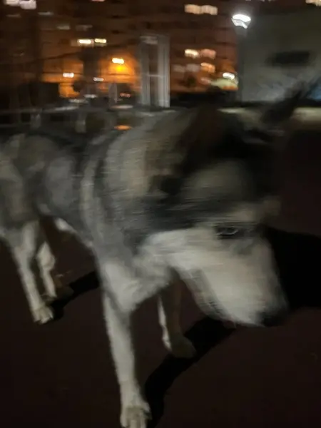 Похожа на хаски. Пол не знаю. На передней лапе выстрежено место, видимо была в клинике.
