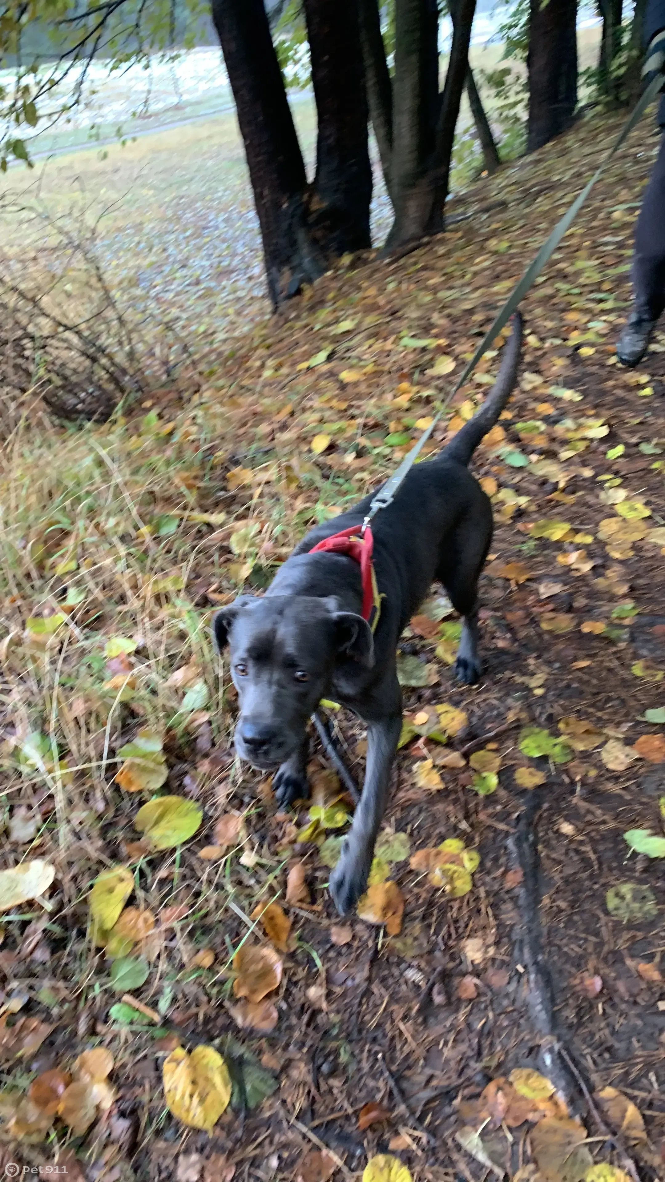 Найдена собака породы Кане-корсо, девочка, очень активная, игривая, добрая. На шее два ошейника красный и жёлтый со световым адаптером.