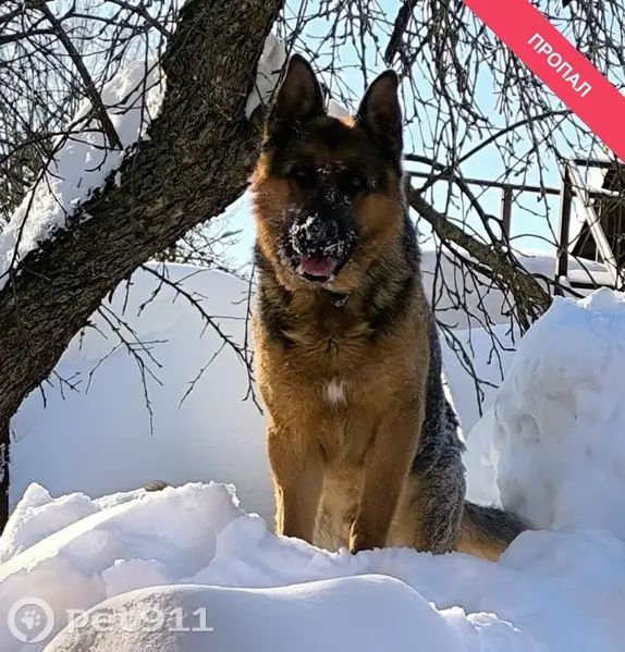 Большая собака с хорошим поводком, видно что ухоженная. Бегает от человека к человеку, наверное ищет хозяев