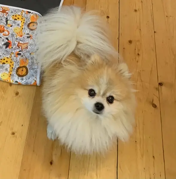 шпиц. Примерно лет 5. Живет у магазина. Магазин 2 октября закрывают. Хромает на заднюю левую лапу.