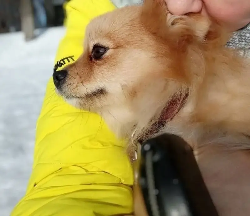 Найдена собака, похожа на финского шпица. Рыжая девочка, молодая, очень добрая и общительная. Была одета в красную шлейку. Собака найдена на платной трассе М-Нева в районе съезда на Зеленоград