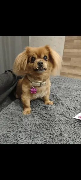 Девочка рыжая, русский той терьер длинношерстный, неправильный прикус, торчит клык.