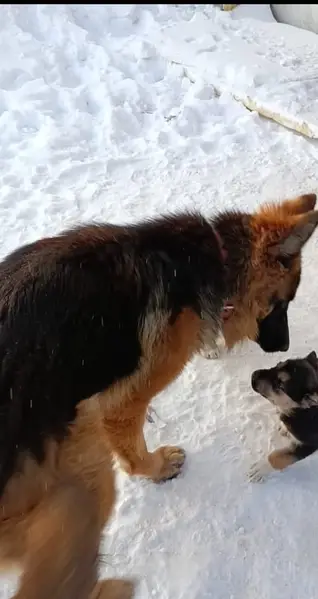Бегал по улице,дружелюбный пёс,метис немецкой овчарки. На вид и по повадкам не более 1 года.Ошейника нет.Очень голоден,но видно домашний.К собаками и детям насьроен дружелюбно.