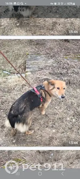 Собака, девочка, найдена сегодня на дороге в районе деревни Псарево. Шлейка и ошейник были на ней, жетона с контактами нет. Собака в безопасности. Ищем хозяев. Звонить Наталья 89777898535